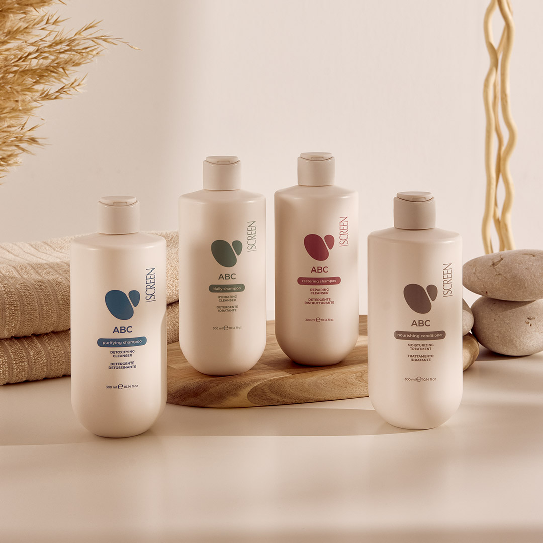 ABC is the immediate, simple, and efficient answer to your everyday beauty needs. A selection of shampoos and multi-functional conditioner designed to meet your needs for hydration, deep cleansing and repair, with lightness and practicality, day after day.